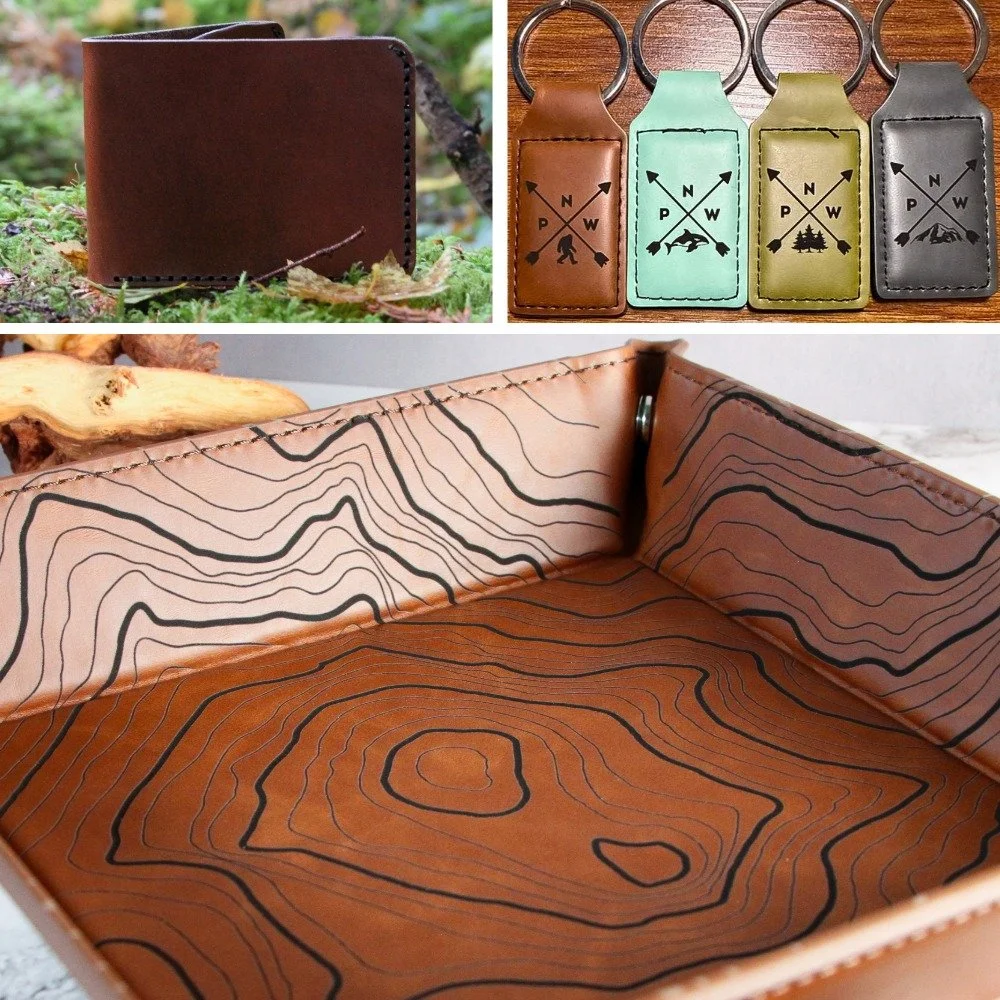 Your choice of vegan leather topography coaster set to protect your surfaces while adding warmth and texture to your space.